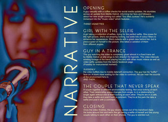 Narrative / Performance music video centred on social media. The idea was the create a series of small vignettes of different situations (a date, a girl always taking selfies, social media notifications) which all tie together through the band performing a live feed of a new song.